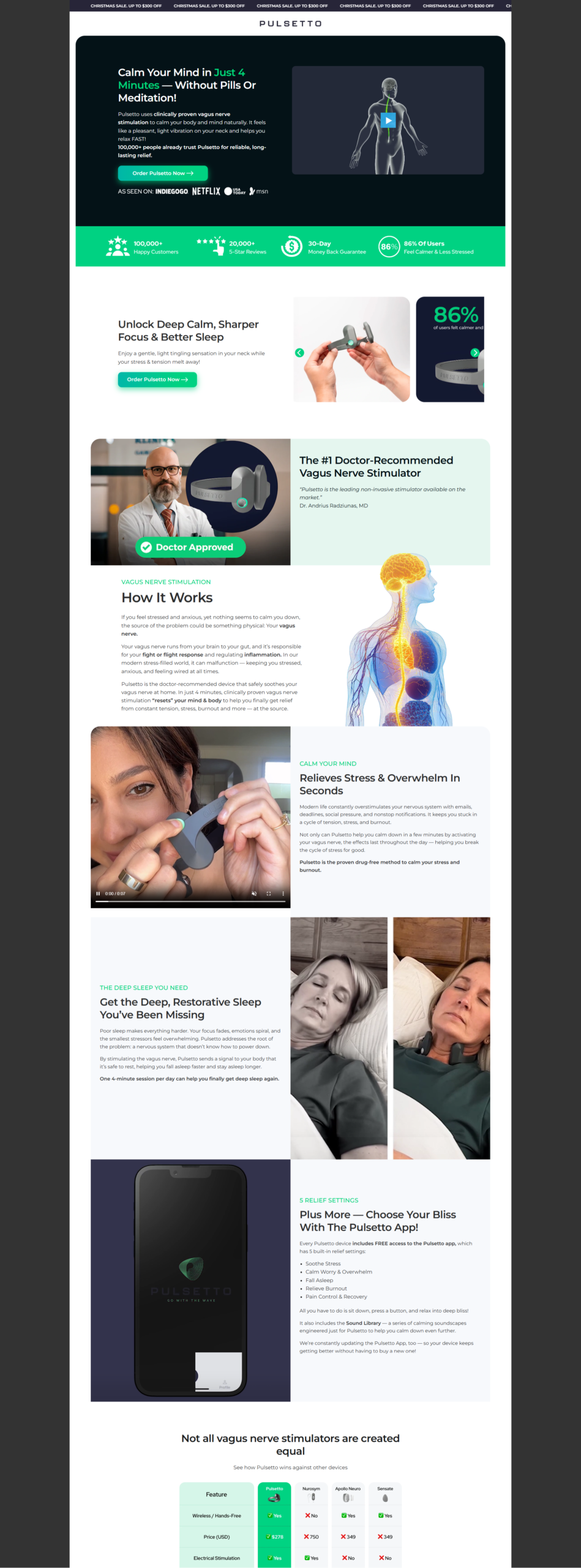 *The product works by delivering mild electrical pulses to the neck area where the vagus nerve is accessible, which can help create a sense of calm, reduce everyday tension, and support focus without drugs or surgery. Pulsetto+1
